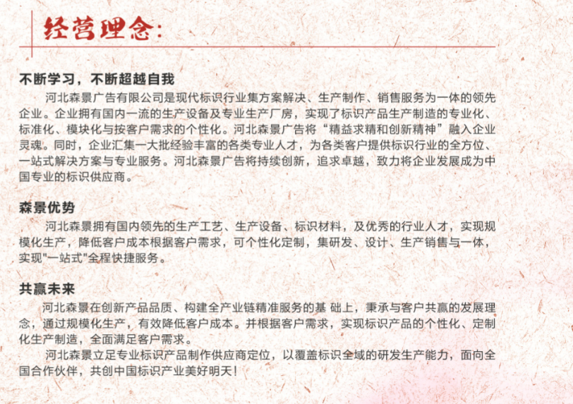 標(biāo)識(shí)標(biāo)牌制作廠家——森景廣告,專業(yè)制作標(biāo)識(shí)標(biāo)牌廠家,是一家設(shè)計(jì)、制作、安裝一體化公司,
