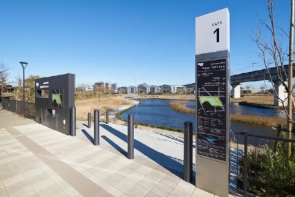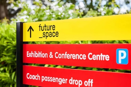城市標識標牌制作設計中圖形附屬空間創(chuàng)意,街區(qū)重要節(jié)點與道路交匯點,適當?shù)卦O置導向標識,可以突出城市形象,美化環(huán)境,導向標識與周圍景觀的巧妙融合會使這里成為一處獨特的風景。這里的導向標識可以是各種形式。